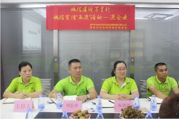 2019年7月10日上午,惠州市企業(yè)誠信建設(shè)促進(jìn)會會長胡美香女士攜同秘書處到我司舉辦【誠信建設(shè)萬里行】誠信宣傳-“進(jìn)企業(yè)”活動,開展誠信主題宣講。